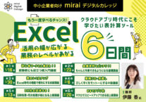 【mirai365】もう一度学べるチャンス! 第1回:Excel 活用の幅が広がる 業務のレベルがあがる 6日間 クラウドアプリ時代にこそ学びたい表計算ツール
