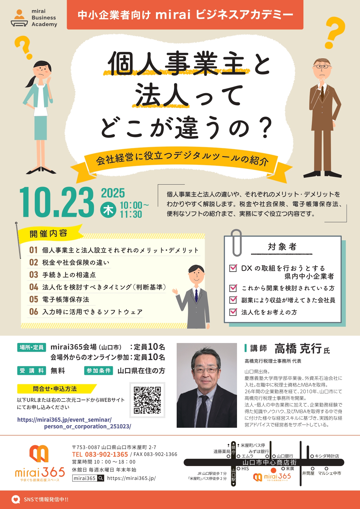 【mirai365】個人事業主と法人ってどこが違うの? ~会社経営に役立つデジタルツールの紹介~